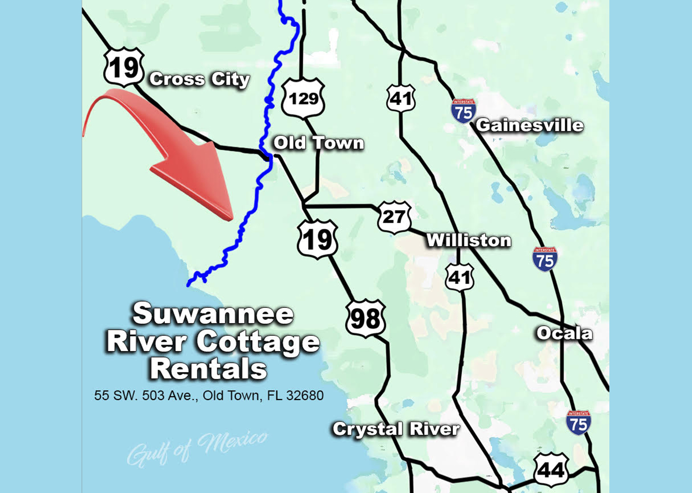 Rent a cottage by the day, week or month on the Suwannee River with swimming pool, hot tub and boat ramp to launch your own boat or rent a Pontoon Boat, Skiff or Jon Boat right on the Suwannee River.