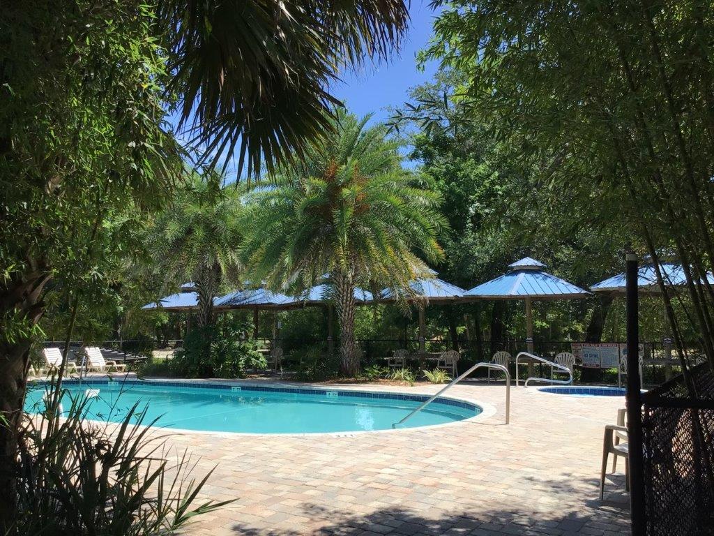 | Park Model Cottage 1 bedroom / 1 bathroom. 14' wide mobile home, 500 sq. ft. AC/Heat and Wi-Fi. This cottage offers a screened lanai with patio furniture. Beautiful palm trees and oaks enhance the paradise setting. 3 night minimum on holiday weekends. Sleeps up to 2 people. See * below |