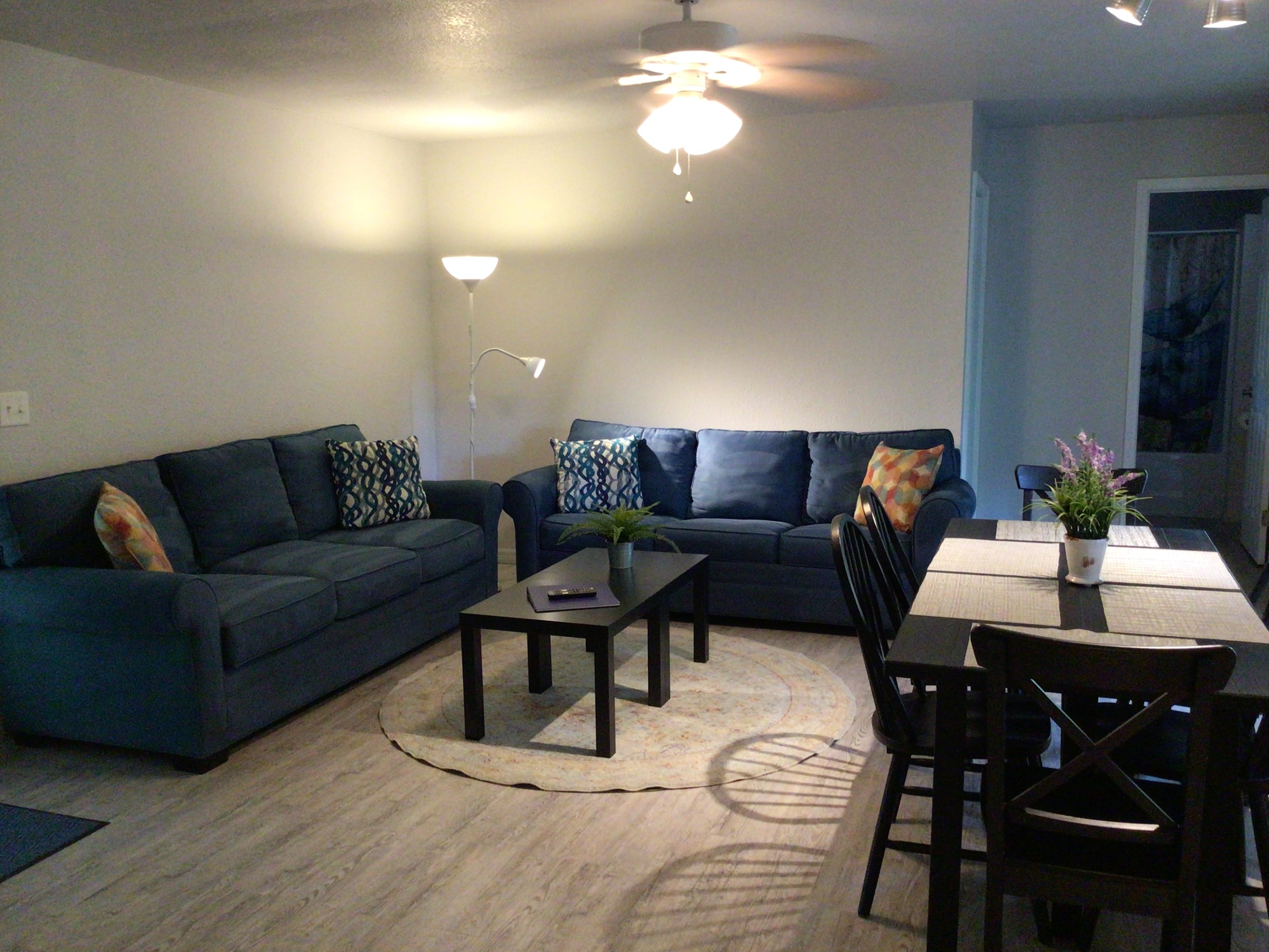 These aren't your run-of-the-mill camping cabins! Our cottages are comfortable, nicely decorated, and sleep from 2 - 6 people. All cottages have cable TV, air conditioning and heat, and feature laminate flooring throughout. All cottages have bathrooms, kitchens, tableware, silverware, pots and pans, and cooking utensils. River’s Nest Cottage has 3 bedrooms, large family room, 2 full bathrooms, and modern kitchen with dishwasher. River’s Nest also has a front deck, grill, table, fire ring (see rules for firewood) and private rear deck with walkway to the swimming pool.